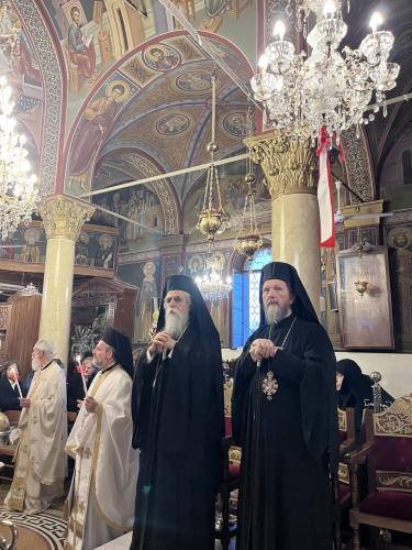Το απόγευμα της εορτής, ο Σεβασμιώτατος Μητροπολίτης Ηλείας και Ωλένης κ.κ Αθανασιος, παραβρέθηκε στον μεθέορτο Αρχιερατικό Εσπερινό, στιν Ιερό Ναό Αγίου Γεωργίου Λειβαδιάς, για να ευχηθεί στον εορτάζοντα Ιεράρχη.