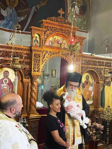 Η μικρή γεννήθηκε στη Χίο και η μητέρα της κατάγεται από την Ερυθραία Αφρικής. Μετά από συνεννόηση και τις απαραίτητες διαδικασίες στο Υπουργείο, δόθηκε η τελική έγκριση από τον Σεβασμιώτατο για να τελεστεί η βάπτιση. Το βρέφος έλαβε το όνομα Αθανασία, ένα όνομα με βαθύ συμβολισμό και ελπίδα για ζωή γεμάτη πίστη και δύναμη.