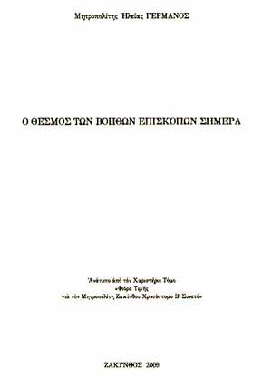 Ανάτυπο από τον Χαριστήριο Τόμο: "Φιόρα Τιμής για τον Μητροπολίτη Ζακύνθου Χρυσόστομο Β' Συνετό"
