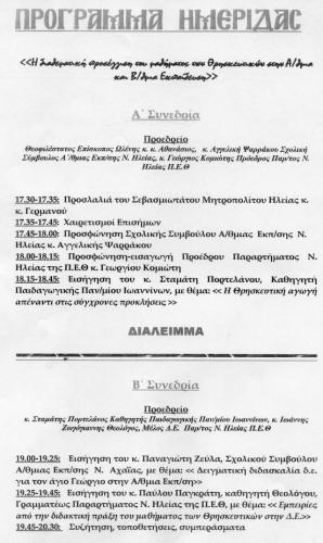 - Πάυλος Παγκράτης, Καθηγητής Θεολόγος, Γραμματέας Παραρτήματος Ν. Ηλείας της Π.Ε.Θ., με θέμα: "Εμπειρίες από την διδακτική πράξη του μαθήματος των Θρησκευτικών στην Δ.Ε."