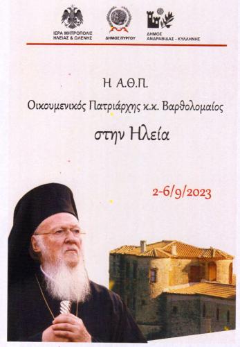 Ο Οικουμενικός Πατριάρχης Βαρθολομαίος, θα βρίσκεται στην Ηλεία τον Σεπτέμβριο και συγκεκριμένα από το Σάββατο 2 Σεπτεμβρίου έως και την Τετάρτη 6 Σεπτεμβρίου.