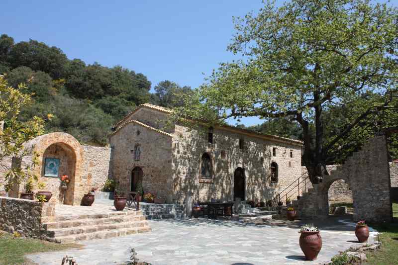 Κοντά στο χωριό Λυγιά και μέσα σε ένα βαθύ καταπράσινο φαράγγι βρίσκεται το Μοναστήρι της Παναγίας της Ελεούσης. Δίπλα είναι μια σπηλιά με σταλακτίτες που το νερό της θεωρείται αγίασμα. Κτίστηκε τον 9ο μ.Χ. αιώνα και πήρε το όνομα από την εικόνα της Παναγίας που βρέθηκε και της έδωσαν το επίθετο Ελεούσα ζητώντας της την προστασία των κατοίκων της περιοχής.