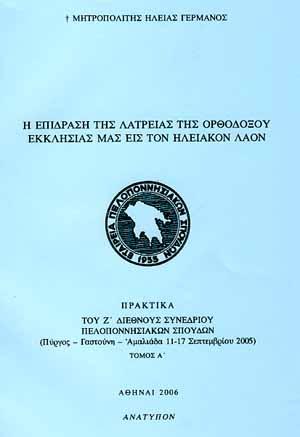 Ανάτυπον από τα Πρακτικά του ΕΚΤΑΚΤΟΥ ΗΛΕΙΑΚΟΥ ΠΝΕΥΜΑΤΙΚΟΥ ΣΥΜΠΟΣΙΟΥ στην Αμαλιάδα, στις 7 - 9 Δεκεμ...