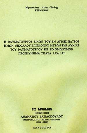 Η ΘΑΥΜΑΤΟΥΡΓΟΣ ΕΙΚΟΝΑ ΤΟΥ ΑΓΙΟΥ ΝΙΚΟΛΑΟΥ ΕΙΣ ΤΟ ΟΜΩΝΥΜΟΝ ΠΡΟΣΚΥΝΗΜΑ ΣΠΑΤΑ ΑΧΑΪΑΣ
