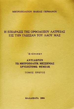 Ανάτυπον από τον Α' Τόμο "ΑΝΤΙΔΩΡΟΝ ΤΩ ΜΗΤΡΟΠΟΛΙΤΗ ΜΕΣΣΗΝΙΑΣ ΧΡΥΣΟΣΤΟΜΩ ΘΕΜΕΛΗ"ΚΑΛΑΜΑΤΑ 2006...
