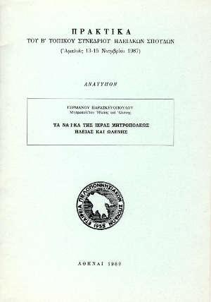 Ανάτυπον εκ των Πρακτικών του Β Τοπικοῦ Συνεδρίου Ηλειακών Σπουδών (Αμαλιάς, 13 - 15 Νοεμβρίου 1987...