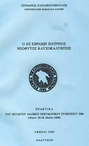 Ανάτυπο από τα Πρακτικά του Εκτάκτου Αχαϊκού Πνευματικού Συμποσίου 2006 εις το Αίγιον (26 - 28 Μαϊου...