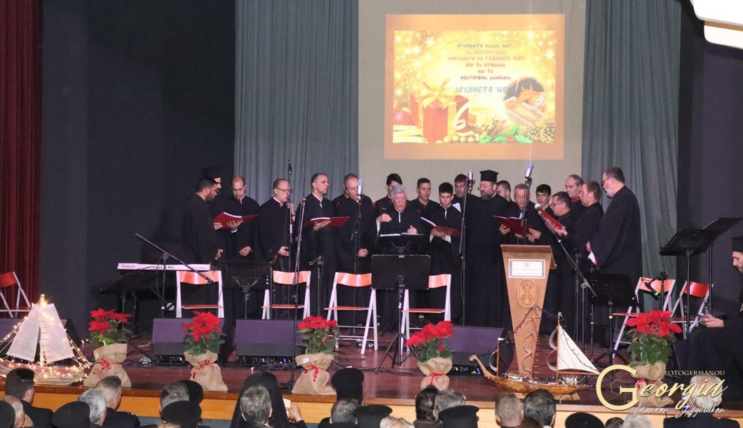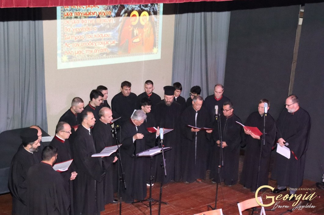 Η βυζαντινή χορωδία υπό την διεύθυνση του κυρίου Γεωργίου Παπαγεωργίου άνοιξε την εκδήλωση και κράτησε συντροφιά στους θεατές ψάλλοντας χριστουγεννιάτικους ύμνους μέσα από την ακολουθία της εορτής των Χριστουγέννων. Η παρουσίαση των ύμνων έγινε από τον κύριο Ιωάννη Γρηγορόπουλο, διδάκτωρ Θεολογίας.