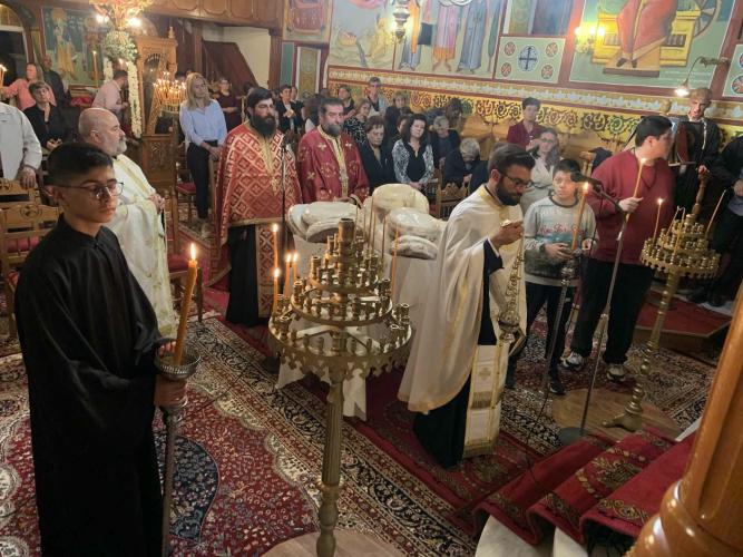 Την παραμονή της εορτής 25 Οκτωβρίου 2024, τελέσθηκε ο Μέγας πανηγυρικός εσπερινός, μετ' αρτοκλασιών και Θείου Κηρύγματος υπό του Πανοσιολογιοτάτου Αρχιμανδρίτου της Ιεράς Μητροπόλεώς μας π. Βασιλείου Σμέρου, πλαισιουμενος από τους ιερείς της περιοχής, ο οποίος, με Θεολογικό τρόπο, αναφέρθηκε στην αγιότητα, στον βίο και στο μαρτύριο του Αγίου Δημητρίου.