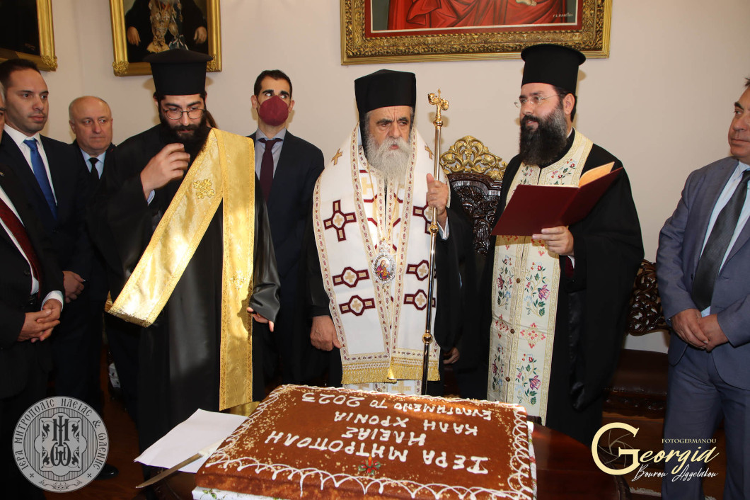 Στίς 10.30 π.μ. θά εὐλογήση τήν Βασιλόπιτα στό Δημαρχεῖον τοῦ Πύργου καί θά εὐχηθῆ στόν Δήμαρχον Πύργου κ. Στάθην Καννήν, στούς Ἀντιδημάρχους καί στούς ἐργαζομένους εἰς τόν Δῆμον Πύργου τά δέοντα γιά τήν νέαν χρονιά ὥστε νά καταστῆ εἰρηνική μέ ἐκπληρώση τῶν εὐγενῶν τους πόθων.