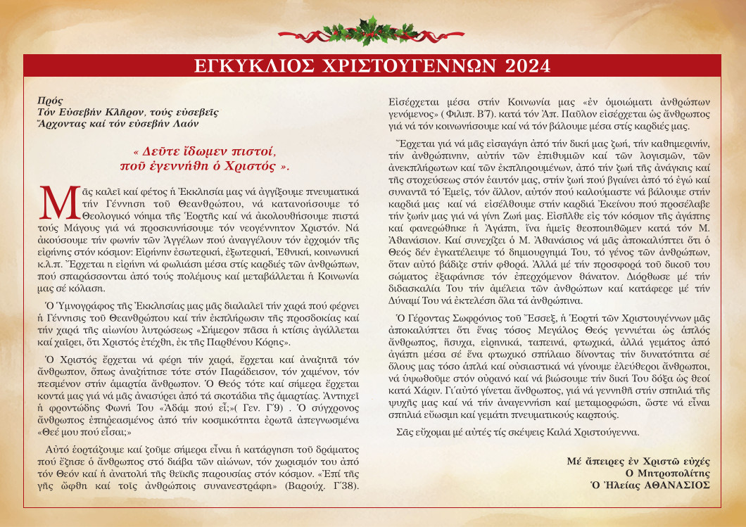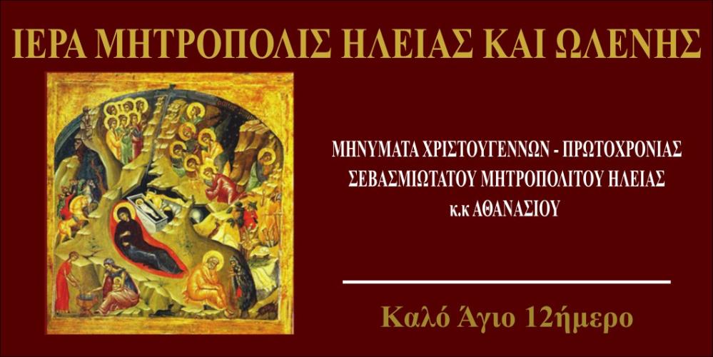 ΜΗΝΥΜΑΤΑ ΧΡΙΣΤΟΥΓΕΝΝΩΝ & ΠΡΩΤΟΧΡΟΝΙΑΣ Τοῦ Σέβ. Μητροπολίτου Ἠλείας καί Ὠλένης κ. ΑΘΑΝΑΣΙΟΥ