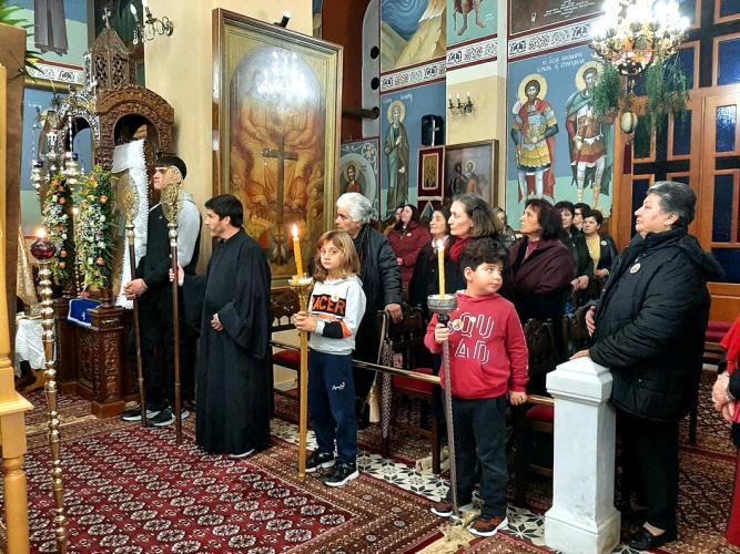 Την παραμονή της εορτής, τελέσθηκε ο Μέγας Πανηγυρικός Εσπερινός μετ’ αρτοκλασιών προεξάρχοντος του Πανοσιολογιοτάτου Αρχιμ. π. Βασιλείου Σμέρου . , και των Αιδεσιμοτ. π. Παντελεήμονος Παπαηλιού, π. Παναγιώτου Κλουκίνα, π. Ιωάννου Στεφανοπούλου, π. Αθανασίου Αγγελοπούλου, π. Ιωάννου Καραγιάννη, π. Αντωνίου Δημητροπουλου, π. Αθανασίου Ράττα, καθώς επίσης και του οικείου Εφημερίου π. Διονυσίου Μιχαλοπούλου.