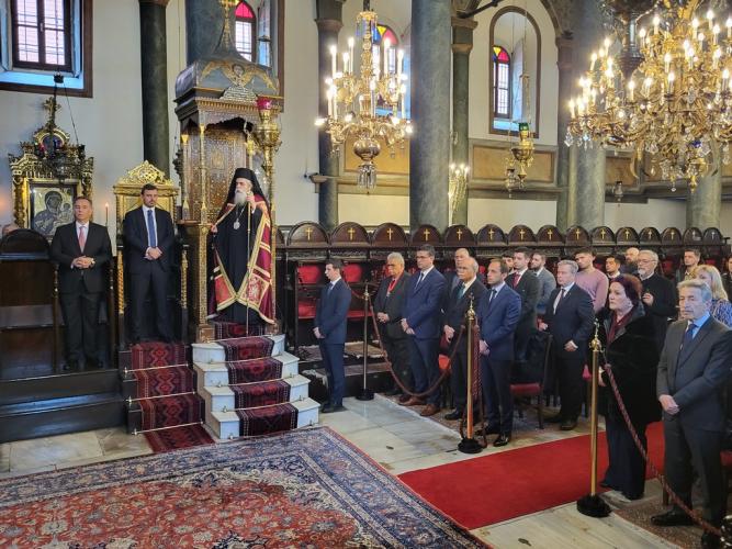 Ἐκφράζουμε τίς εὐχαριστίες μας, πού ἡ Χάρις τοῦ Θεοῦ μᾶς ἀξίωσε καί πάλι νά ἔλθουμε στήν πόλιν τῶν ὀνείρων μας, στήν Κωνσταντινούπολιν, στό Οἰκουμενικό Πατριαρχεῖον, στήν Μητέρα Ἐκκλησία, μέ τούς ἀξιοτίμους Δημάρχους, Ἀντιδημάρχους, Πρόεδρον Ἑλληνο-Ἱταλικοῦ Ἐπιμελητηρίου κ. Τσαμίχα, γιά νά ἀσπαθοῦμε τό χέρι τοῦ πνευματικοῦ μας πατρός, τοῦ Οἰκουμενικοῦ Πατριάρχου, πού μέ τήν σοφία, τήν γνῶσι καί τίς ἐμπειρίες του ἀκτινοβολεῖ παντοῦ καί σκορπίζει εἰς ὅλα τά πέρατα τῆς γῆς τήν πατρική ἀγάπη καί θαλπωρή.