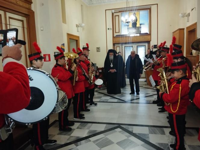 Η μπάντα της Φιλαρμονικής Πύργου ΄΄Ο ΑΠΟΛΛΩΝ΄΄ έπαιξε τα κάλαντα της Πρωτοχρονιάς στο Σεβασμιώτατο Μητροπολίτη Ηλείας και Ωλένης κ.κ. ΑΘΑΝΑΣΙΟ , στις 31 Δεκεμβρίου 2024.