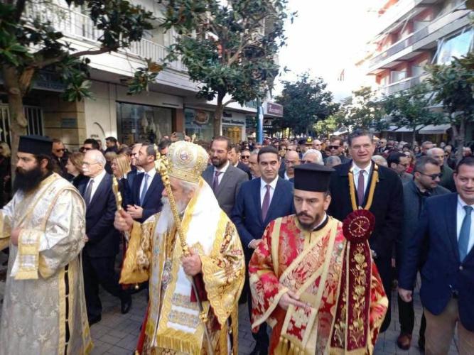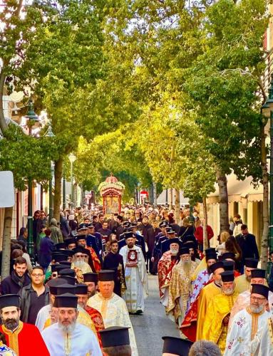 Στην συνέχεια ακολούθησε η Λειτανεία της εικόνας του Αγίου Χαραλάμπους στους κεντρικούς δρόμους της πόλεως του Πύργου.